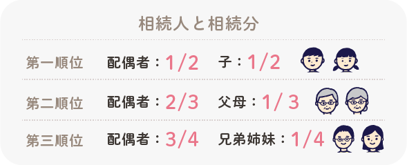 配偶者は常に相続人となり、子、父母、兄弟姉妹の順に相続人になります。